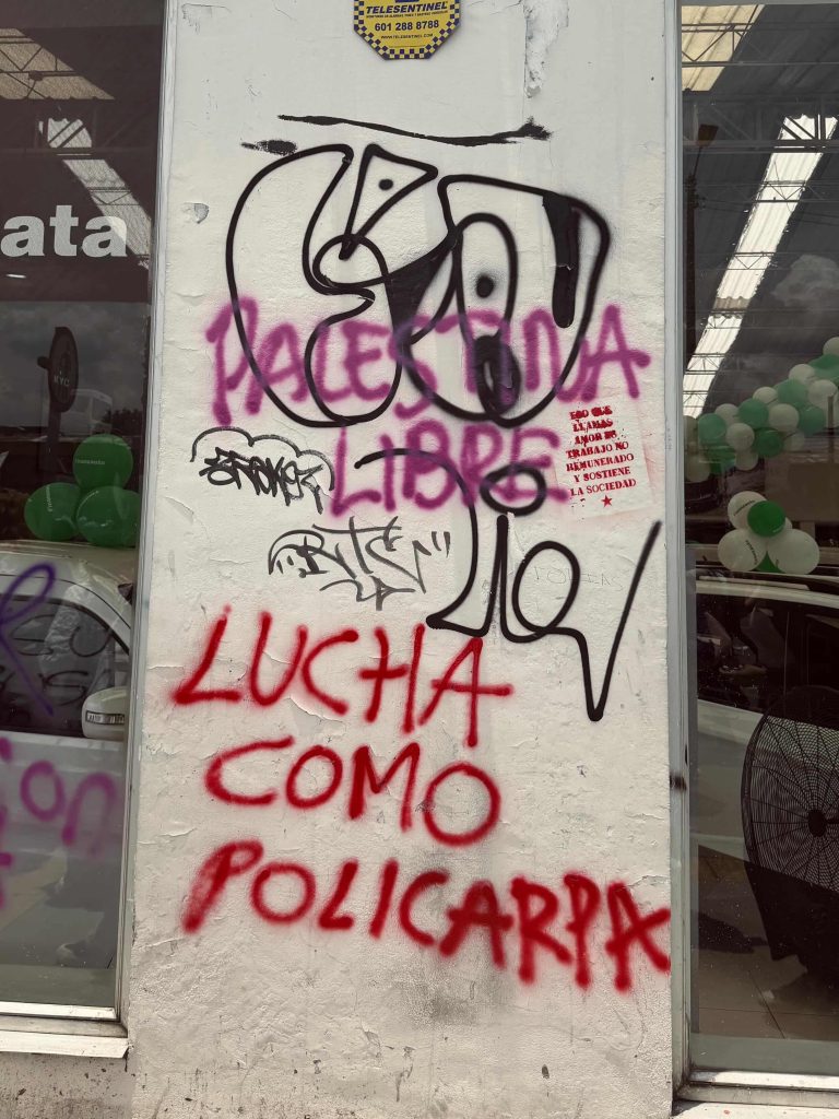 Junto al duelo aparece la rabia. Está escrita en los muros, en los carteles, en las frases que se repiten con insistencia durante la marcha. No es una rabia caótica ni desordenada, sino una indignación política que nace de décadas de impunidad y silencios. Las consignas pintadas en rejas o persianas metálicas transforman el paisaje urbano en un espacio de denuncia. Allí donde la institucionalidad muchas veces ha sido incapaz de responder, la palabra pública emerge como una forma de justicia simbólica.
