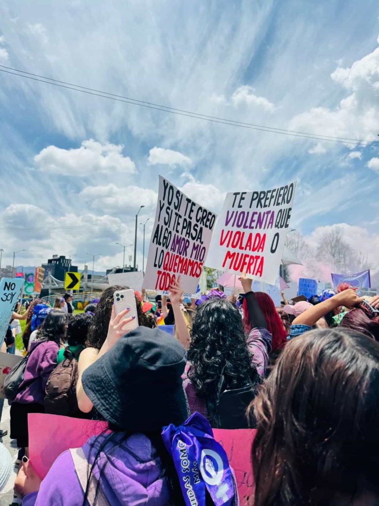 Cuando la marcha comienza a dispersarse, quedan en el suelo restos de carteles mojados por la lluvia y trazos de pintura morada sobre el asfalto. Caminar junto a la marcha también deja una certeza difícil de ignorar, pues aunque las violencias que atraviesan a las mujeres no son idénticas, todas comparten una experiencia común de vulnerabilidad dentro de un mismo orden social. No todas hemos vivido las mismas historias, pero pocas —si es que alguna— han transitado la vida sin enfrentarse a alguna forma de violencia, desde las más visibles hasta aquellas que se sostienen en gestos cotidianos que parecen insignificantes.